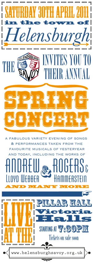 For over a decade now, Euan has been producing advertising materials for this amateur club. The work has included posters, flyers, tickets, programme designs and print & online adverts. Above is a small selection of the posters & flyers produced across the years.